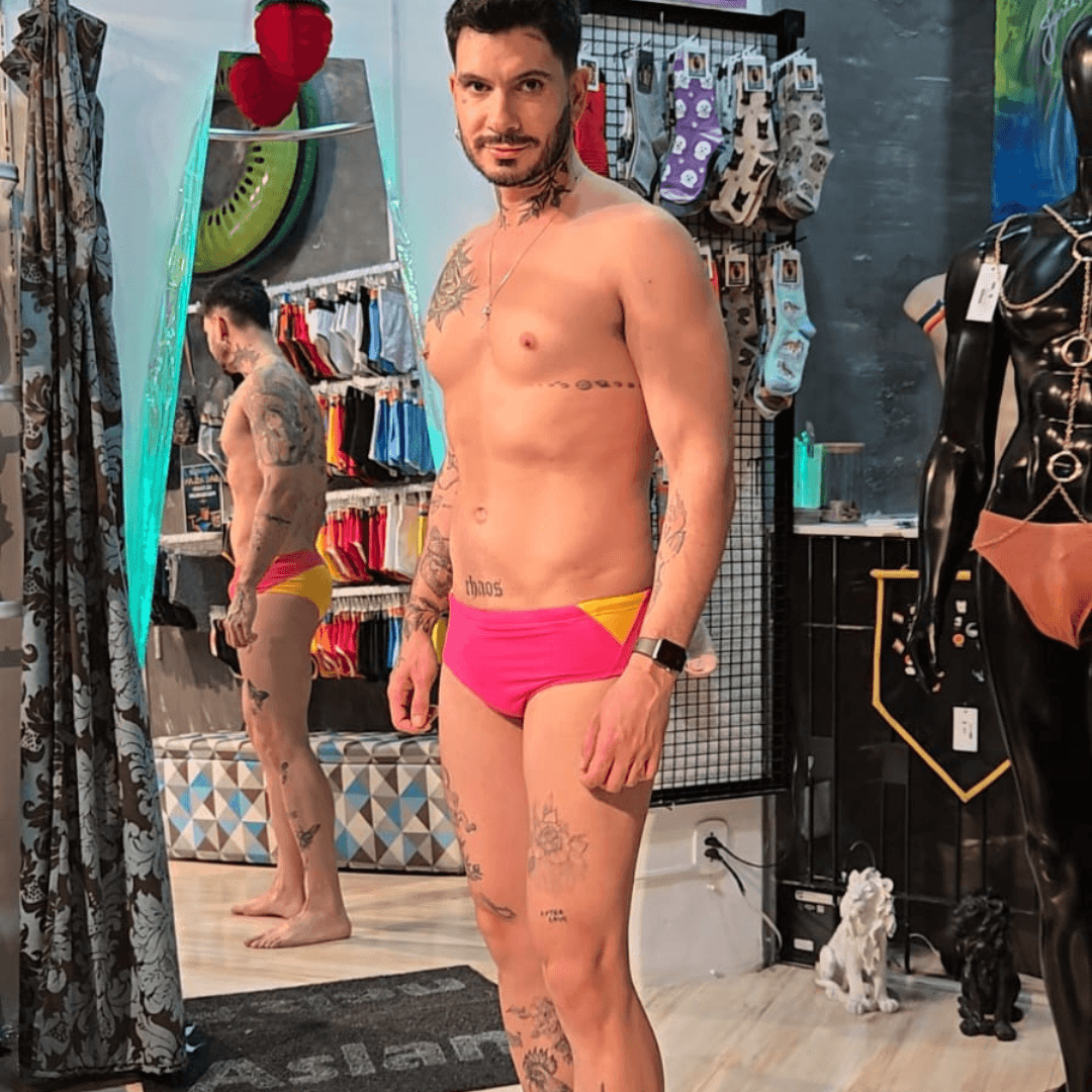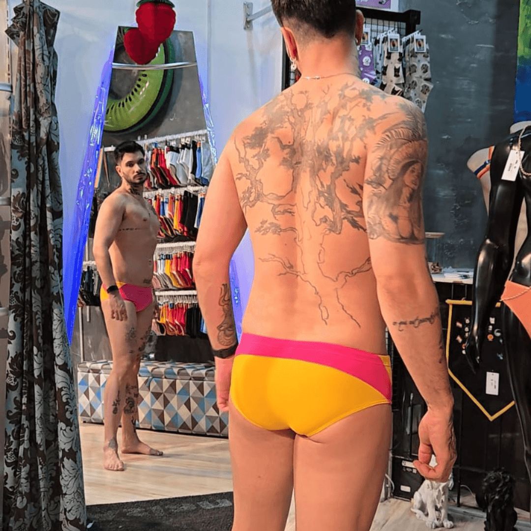 Palavras-chave para busca online: sunga estampada masculina, sunga colorida para praia, sunga diferente para verão, sunga masculina estilosa, sunga gay friendly, moda praia masculina 2025, sunga com forro interno, Aslan Shop São Paulo, moda praia com estilo, roupa de banho masculina ousada, sunga arco-íris masculina, sunga rua augusta, sunga gay, sunga