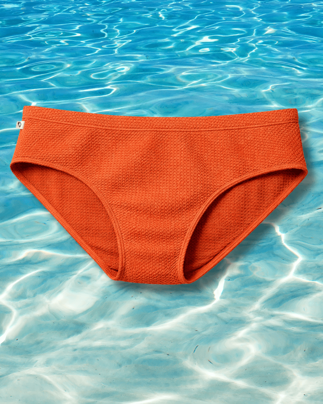 A sunga texturizada é adequada para uso na piscina com cloro? Sim. O cuidado recomendado é lavar à mão com sabão neutro após o uso para preservar o tecido e a textura por mais tempo.