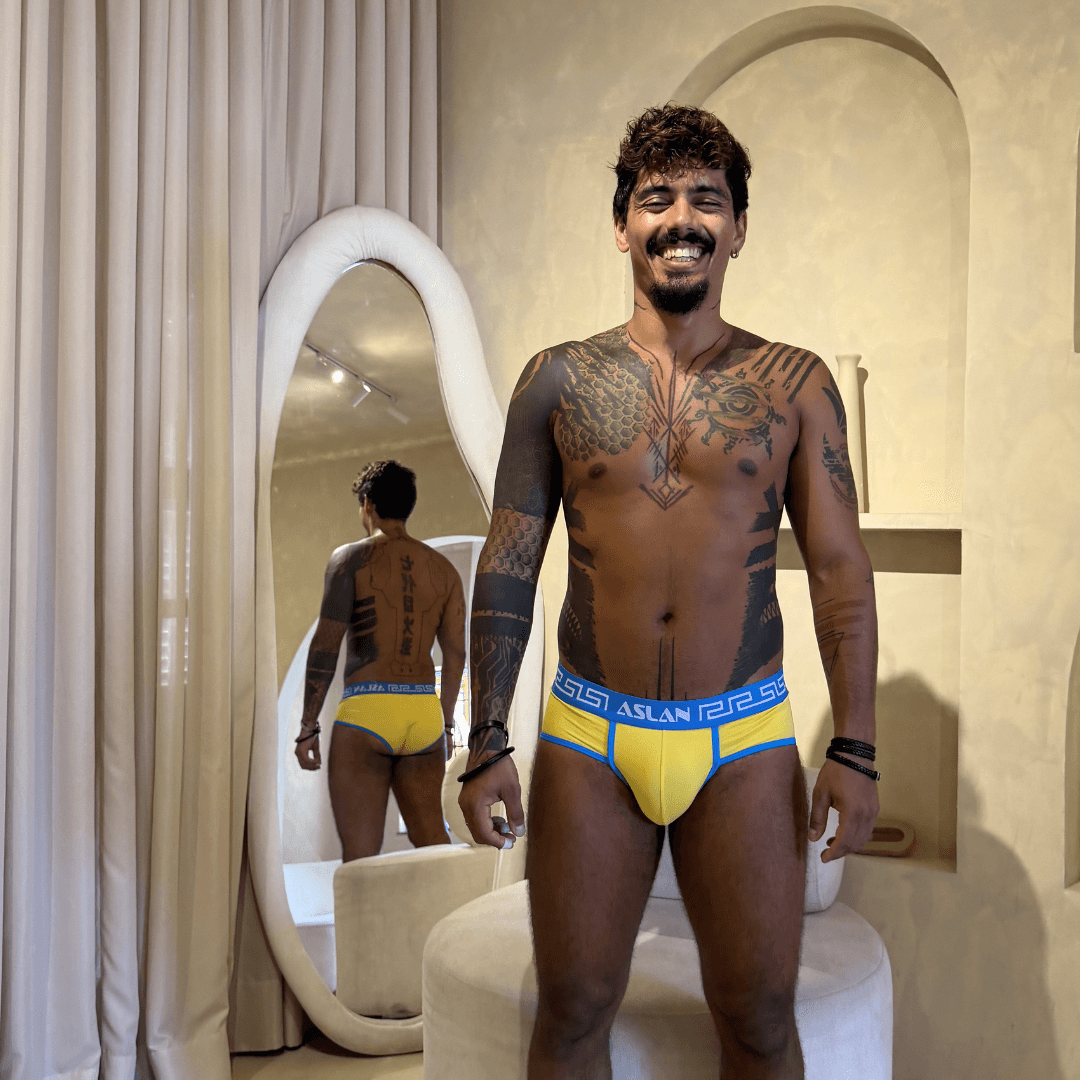 Onde comprar a cueca em malha fria ASLAN? Pelo site aslanshop.com.br, pelo Instagram @aslanshopbr ou na loja física na Rua Augusta, 1371 (Galeria Ouro Velho), São Paulo. Atendimento personalizado pelo WhatsApp (11) 97152-0278, das 13h às 19h.